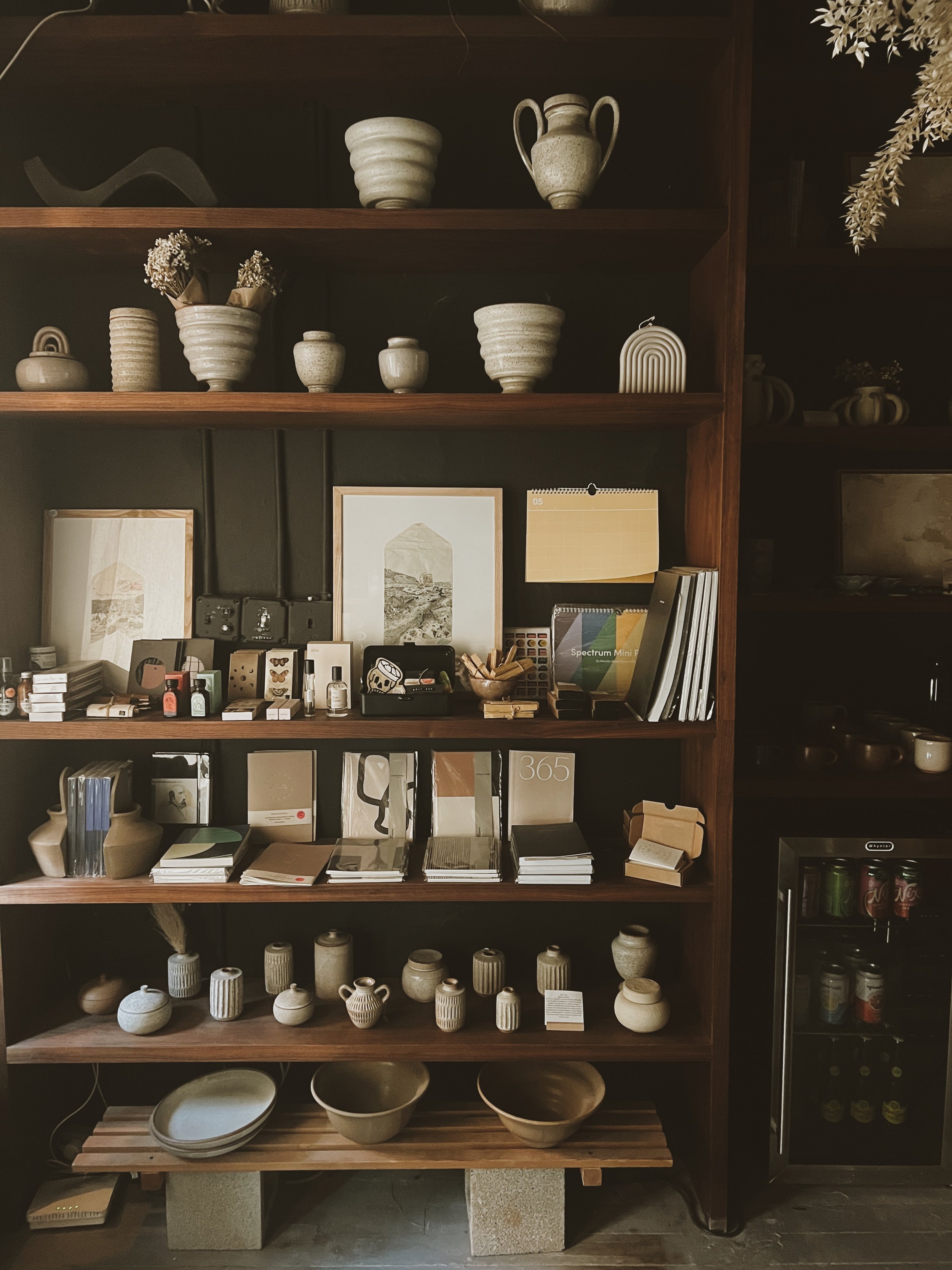 —a cozy, curated space celebrating the work of small makers and our own studio community. Here, you’ll find handcrafted pottery made by our members and teachers, alongside a thoughtful selection of pottery tools, apothecary goods, and unique homewares.